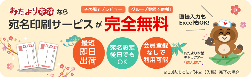おたより本舗デザイン 1027種類 納期 最短即日出荷 宛名印刷 完全無料 おたより本舗のキャンペーン!